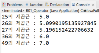 System.out.println("25의 제곱근 : " + Math.sqrt(25));