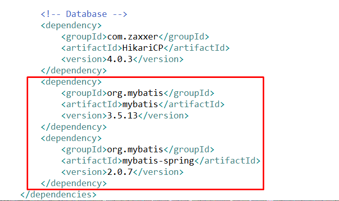 pom.xml에 mybatis 적용법