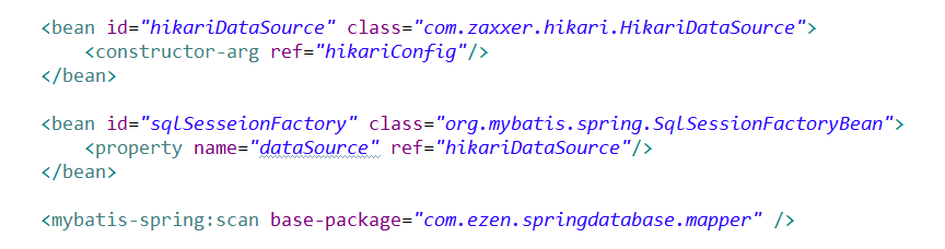 <mybatis-spring:scan base-package="com.ezen.springdatabase.mapper" />