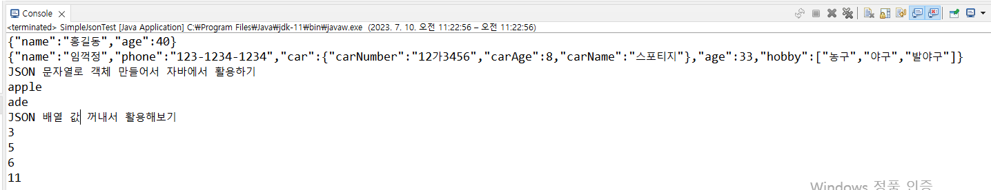 System.out.println("JSON 배열 값 꺼내서 활용해보기");