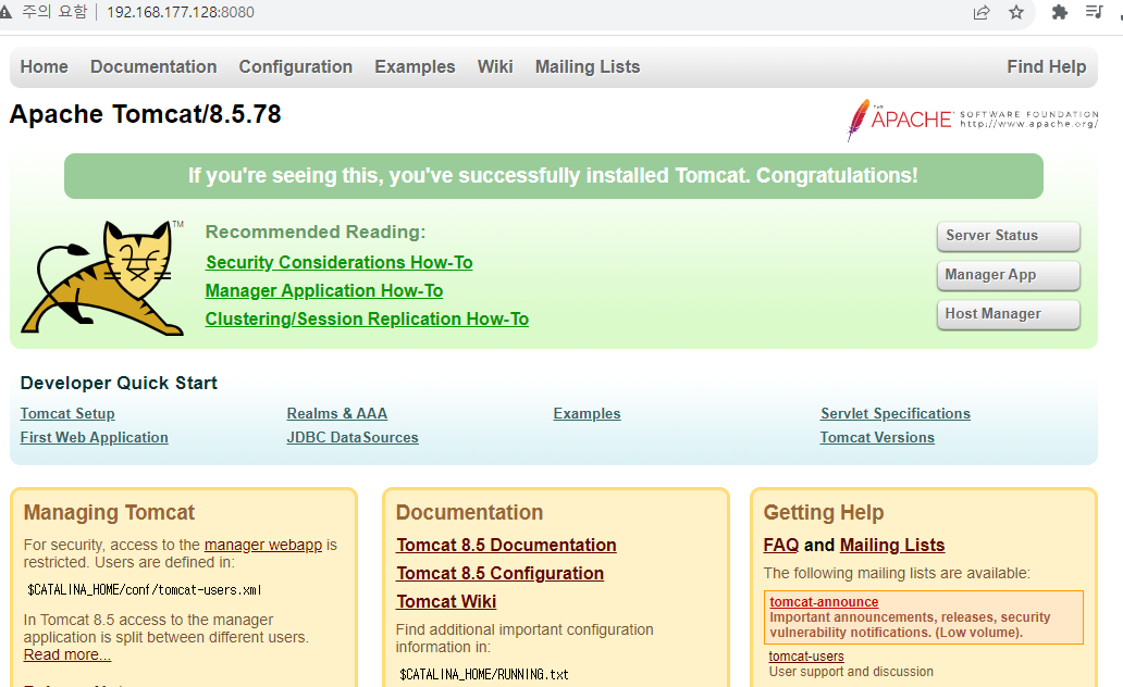 7. http://IP주소:8080 접속