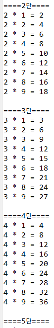 System.out.printf("%d * %d = %d\n", dan, gop, dan * gop);
