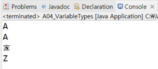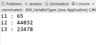 int i1 = 'A'; // 실제로 i1에는 65가 저장된다.
