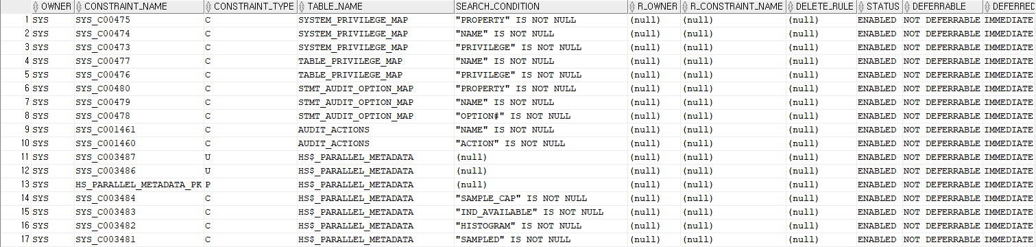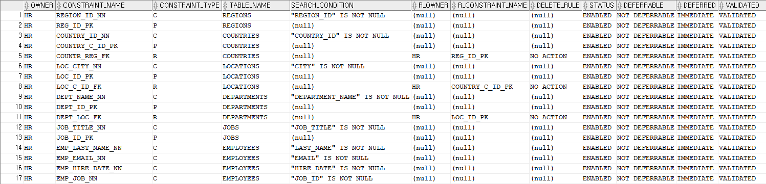 SELECT * FROM user_constraints WHERE table_name = 'EMPLOYEES';